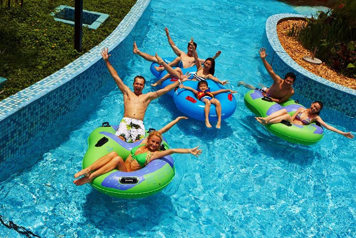 ·  漂流河長度約700米,你只需要躺在特別設計的浮圈上沿河漂流放松自己就行,非常悠閑的一項體驗。