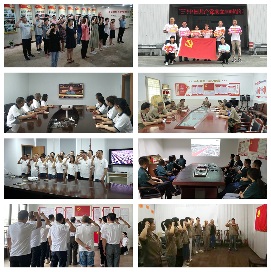 7月1日,是偉大的中國(guó)共產(chǎn)黨成立100周年,舉國(guó)上下普天同慶,卡森集團(tuán)也不例外。當(dāng)天一大早,公司黨委全體黨員滿懷激情,在各支部書記的帶領(lǐng)下,開展重溫誓詞、觀看《慶祝中國(guó)共產(chǎn)黨成立100周年大會(huì)》直播、高唱《中華人民共和國(guó)國(guó)歌》、《沒有共產(chǎn)黨就沒有新中國(guó)》等,慶祝黨的100周歲生日。