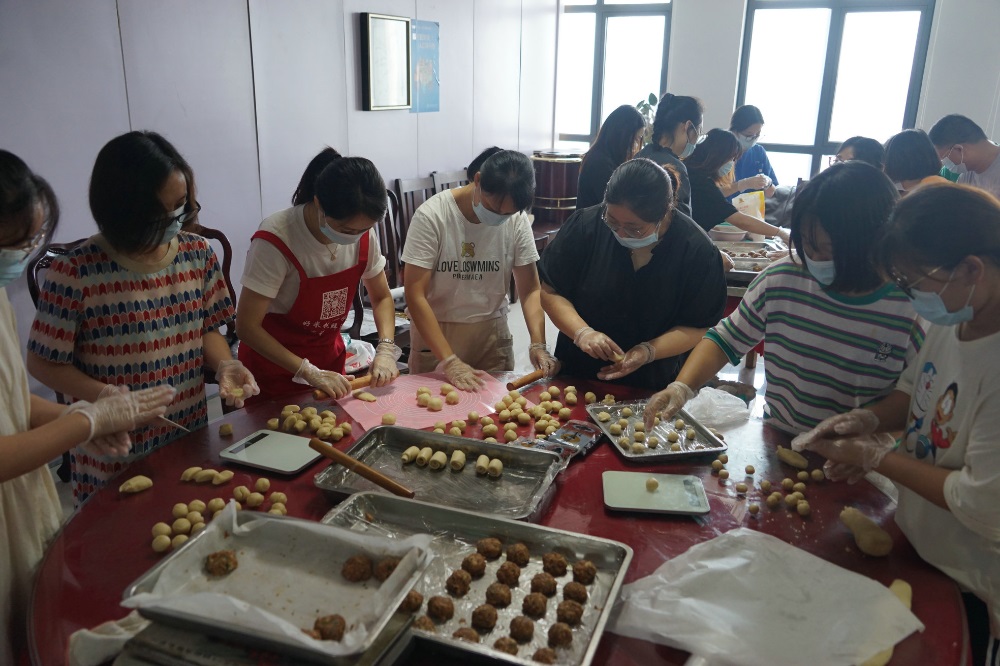 在群團組織的帶領下,大伙兒一起親身體驗做月餅的樂趣,現場熱鬧非凡,氣氛活躍喜慶。公司不乏做月餅高手,在她們點撥下,大家信手拈來,人人化身月餅師傅,揉粉、搟皮、做餡、包裹、上色、烘焙……一個個精美的月餅在手中呈現,空氣中洋溢著滿滿的成就感。
