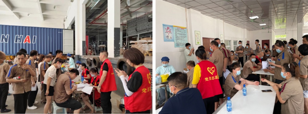 雖然烈日炎炎,持續高溫酷暑,但擋不住大家奉獻愛心的步伐,在集團下屬子公司各團干的宣傳動員下,前期共有8家子公司200余名員工報名參與。獻血活動當天,在黨員志愿者的指引下,大家有序地進行網上登記、打印表格,配合工作人員完成血壓測量、血液初篩、血型化驗等各項流程。獻血結束后,黨員志愿者們協助血站工作人員配發小禮品,叮囑大家注意休息,為活動的順利開展提供了保障。