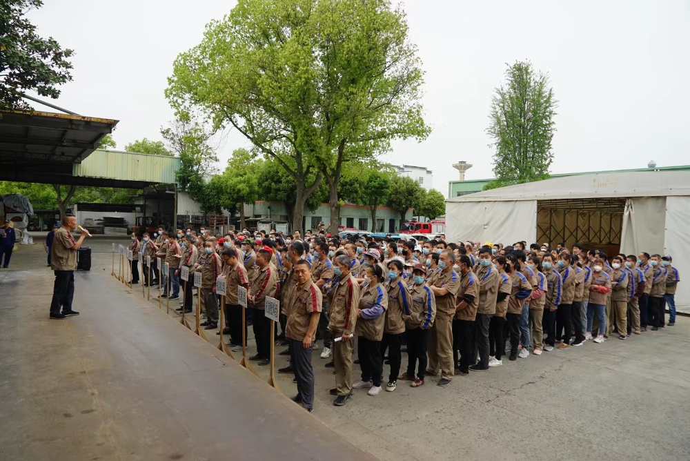 下午2點半,廠區(qū)內警報聲響起,員工們有序、從容地從各個崗位上“逃離”,火速趕到“安全區(qū)”集合,參加全企消防理論培訓與實操訓練。