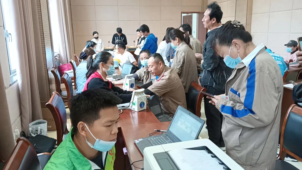5月12日,在斜橋鎮政府會議中心的獻血現場,有一群特別亮眼的人,他們大部分穿著恒森卡其色的工作服,有序地流動在獻血的各個點上,填表登記、測量血壓、抽血化驗,而后勇敢地擼起袖子獻出殷紅的熱血。