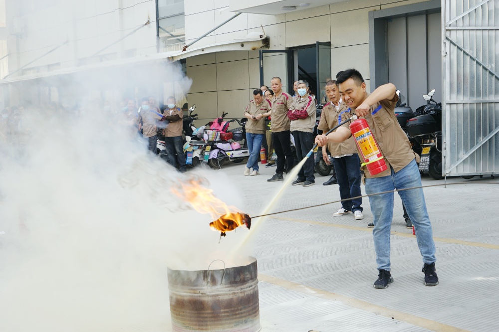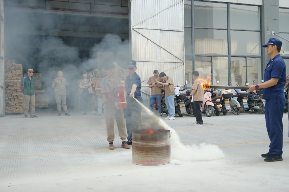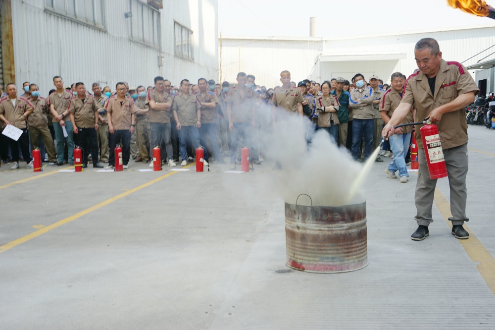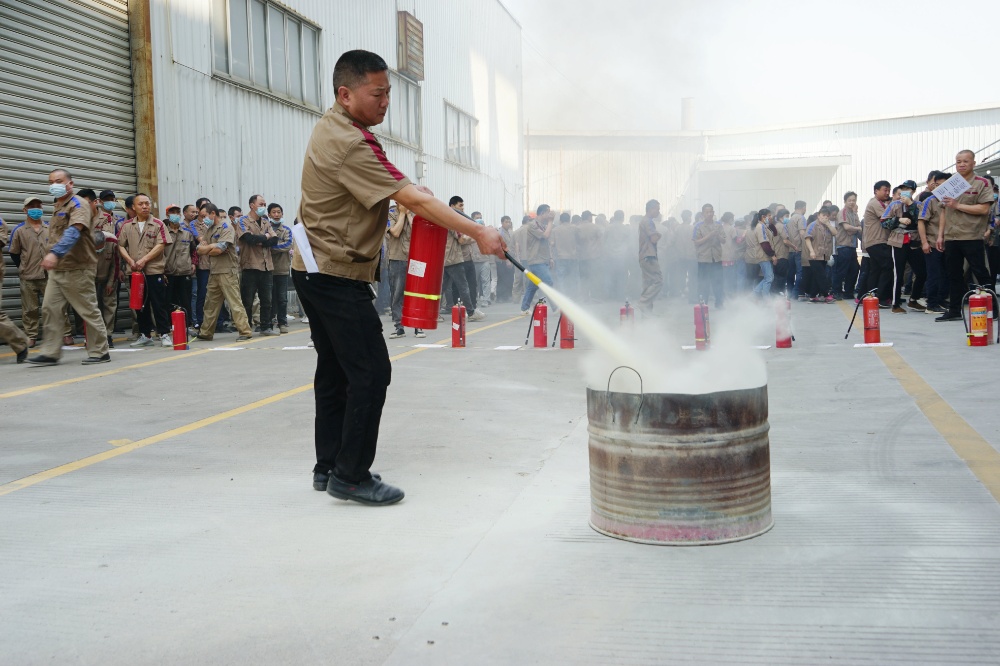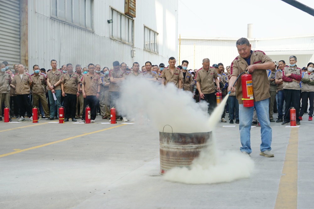 首先由車間主任、班組長等進(jìn)行操作示范,隨后由新員工們輪流使用滅火器訓(xùn)練,對(duì)不當(dāng)操作進(jìn)行現(xiàn)場糾正,力求使公司每位員工都能熟練掌握滅火技能。