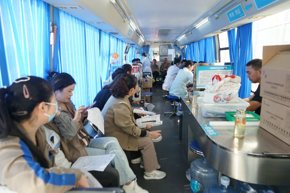 當天上午,整個廠區洋溢著愛的暖流。只見大家在采血車前有序填寫獻血登記表、測量血壓、征詢體檢、初篩采樣。隨后合格者上車獻血,奉獻愛心。