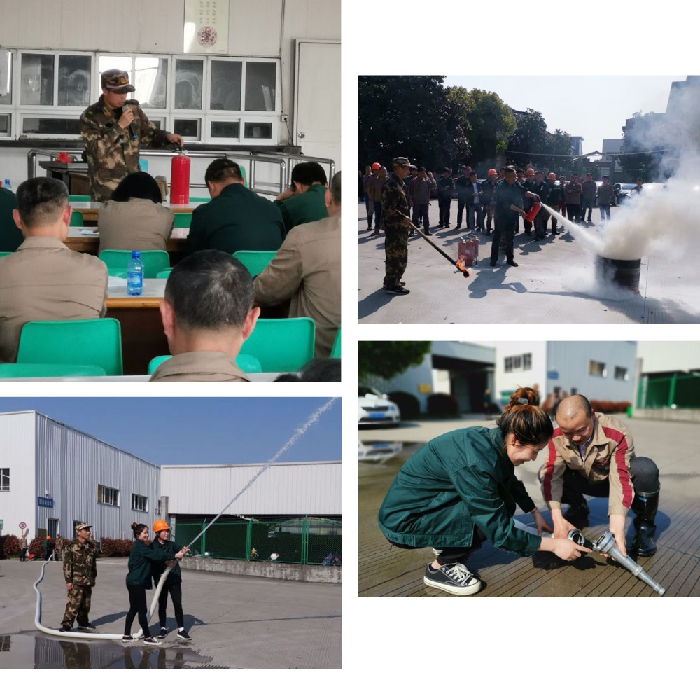 最后組織開展了現場消防培訓和實戰演練活動。朱隊長和其他兩位消防戰士向義務消防員現場演示消防器材的使用,組織50多名義務消防員、新員工在空地上開展消防器材使用和現場演練。隨著火盆的火燃起,接到火險命令后,各位義務消防員通過使用滅火器撲滅火盆、拉設水帶滅火等實戰演練,全面提升義務消防隊員會消防器材使用、會滅初期火災、會疏散、會逃生自救能力。