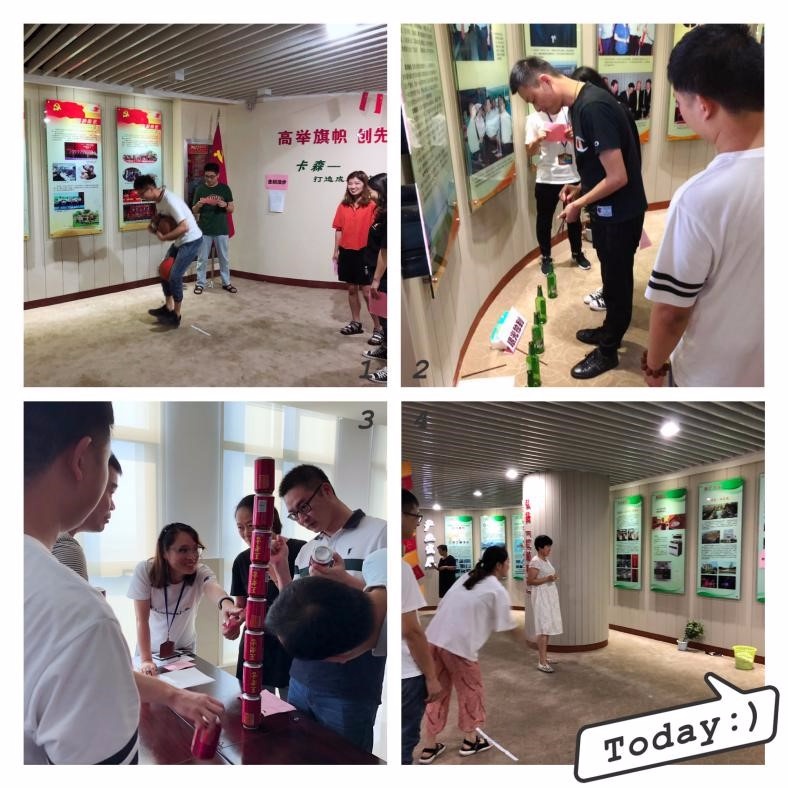 企鵝漫步其實(shí)是要求游戲者腋下夾兩個(gè)球,雙腿間再夾一個(gè)球,越過(guò)障礙走一個(gè)來(lái)回。看,我們小陸同學(xué)像不像一只企鵝。易拉罐積木是一正一反依次往上疊,果然高手在民間,瞧,我們葛經(jīng)理竟疊起了8個(gè),直叫人拍手叫好。其他項(xiàng)目也是一片熱鬧景象,現(xiàn)場(chǎng)一片歡聲笑語(yǔ)。